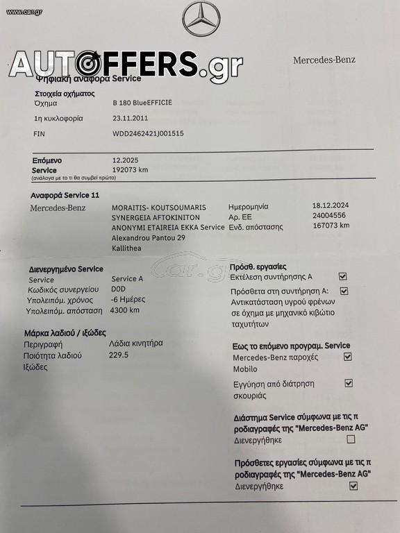 Mercedes-Benz B 180 1.6 122HP ΕΛΛΗΝΙΚΟ +BOOK-ΔΕΡΜΑ BENZINH 2012
