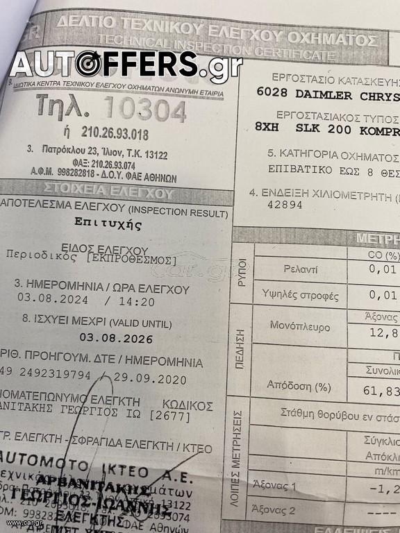 Mercedes-Benz SLK 200 44.000Km!!!!!!! 1.8K 163HP 1ΧΕΡΙ ΙΔΙΩΤΗ ΕΛΛΗΝΙΚΟ+BOOK 2008