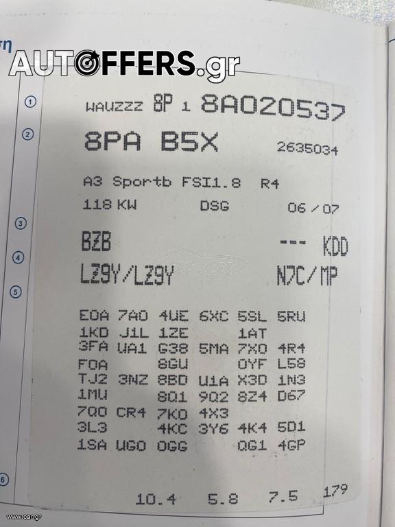 Audi A3 ΛΙΓΑ ΧΛΜ!!! 1.8 TFSI SPORTBACK AUTOMATIC AMBITION 5ΘΥΡΟ 2007
