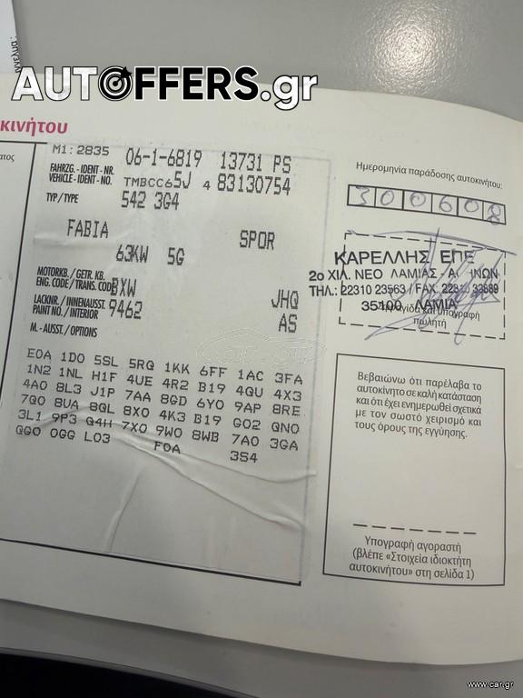 • Skoda Fabia 1.4 85HP 5ΘΥΡΟ 1ΧΕΡΙ ΙΔΙΩΤΗ ΜΕ BOOK SER/CE